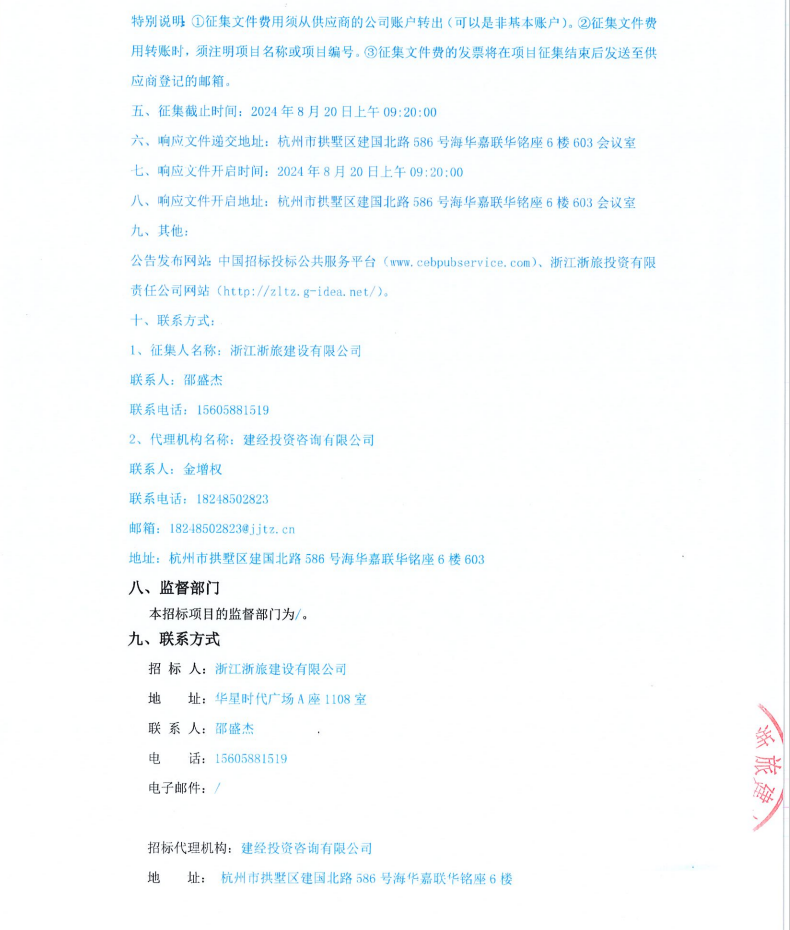 浙江浙旅建設(shè)有限公司分供商庫(kù)(智慧旅游)補(bǔ)充征集公告