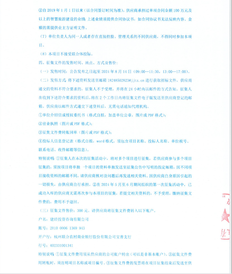 浙江浙旅建設(shè)有限公司分供商庫(智慧旅游)補(bǔ)充征集公告