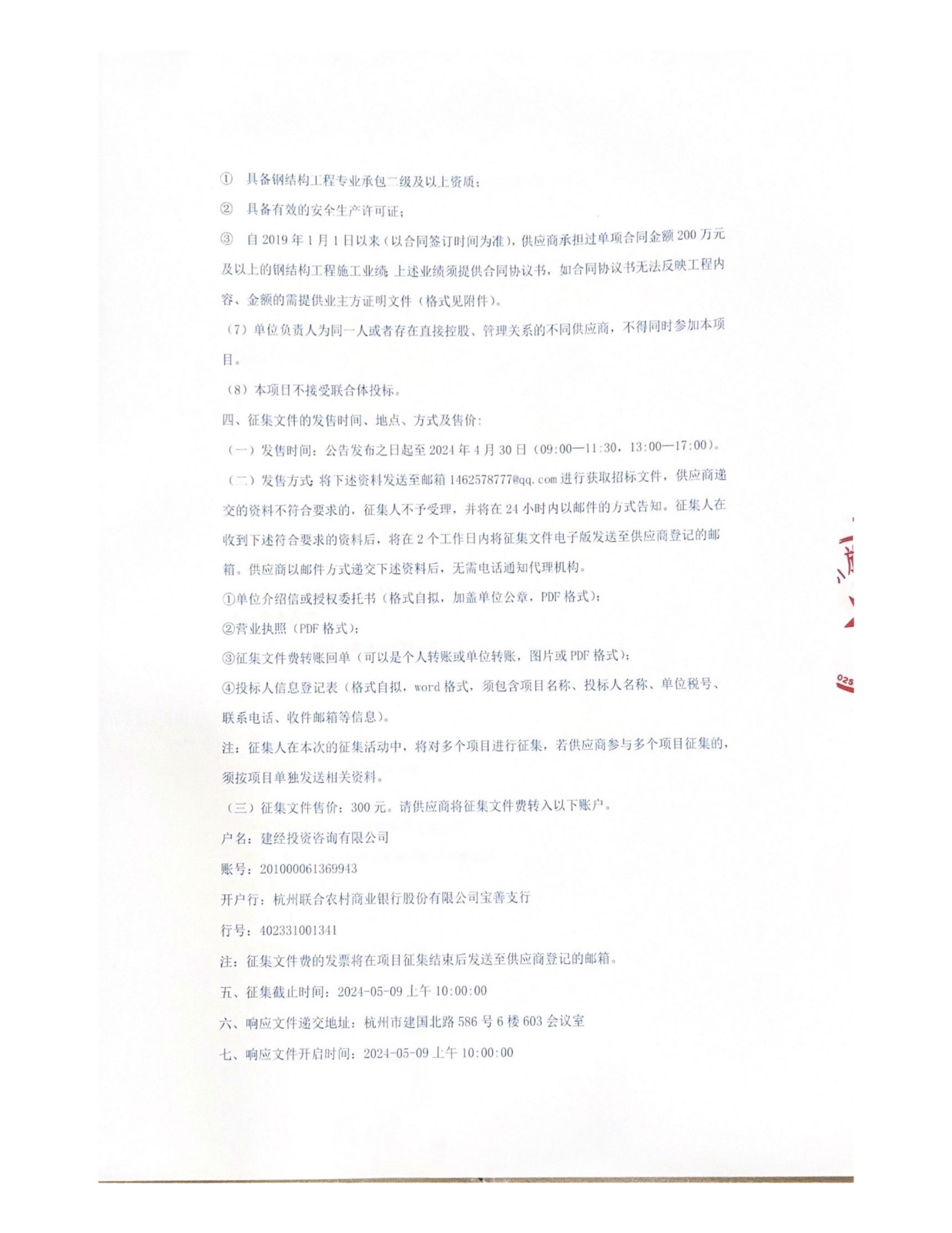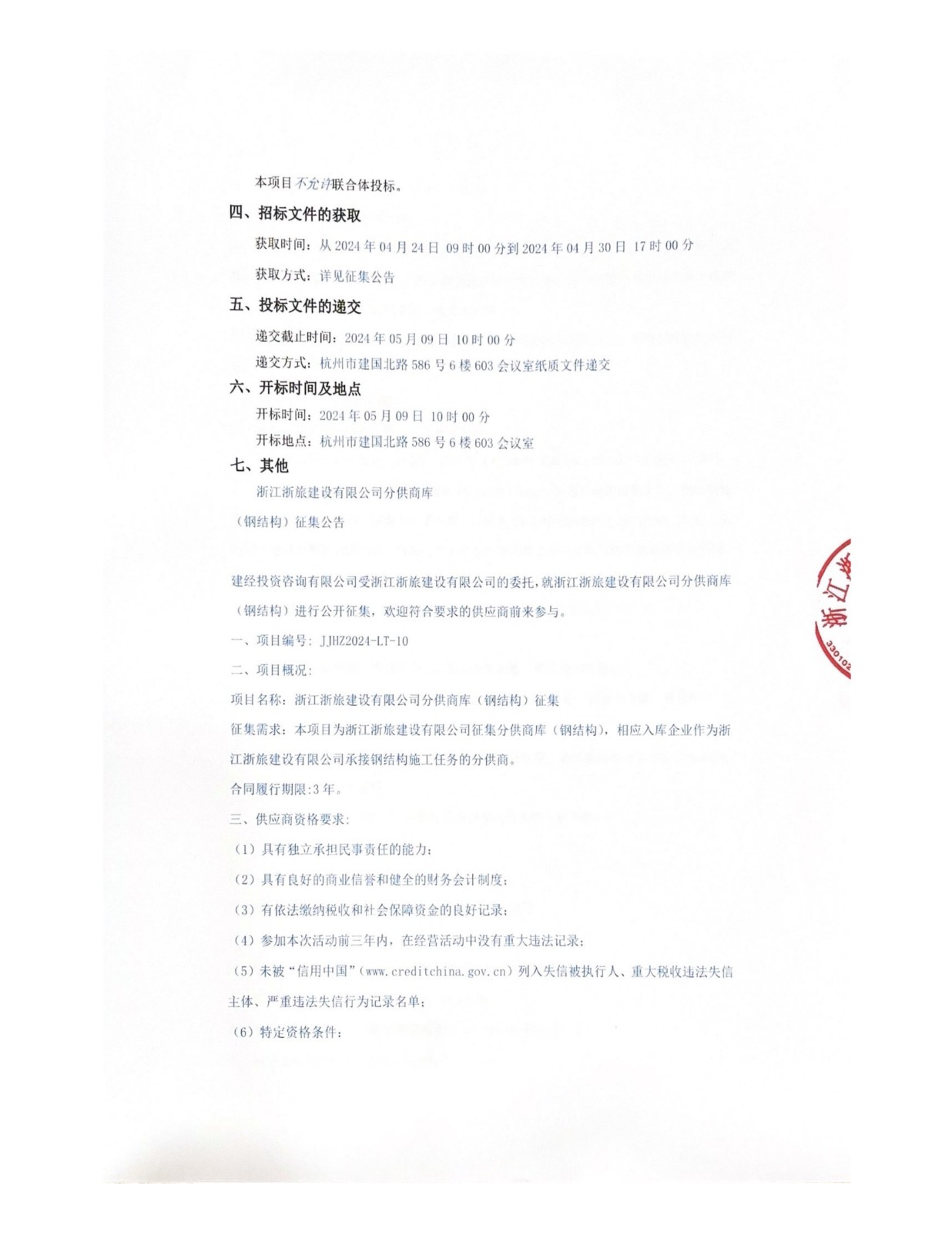 浙江浙旅建設(shè)有限公司分供商庫(鋼結(jié)構(gòu))征集公告