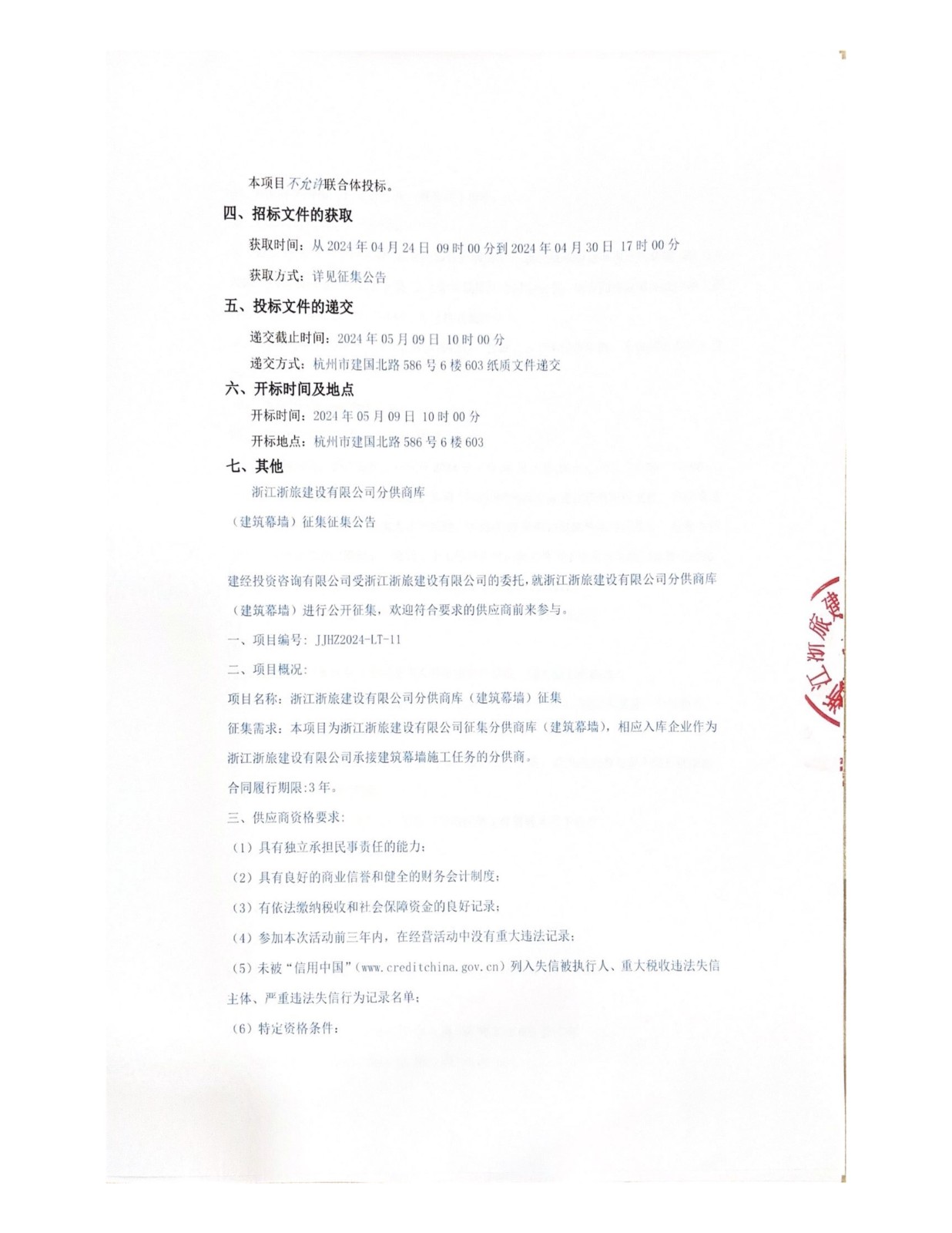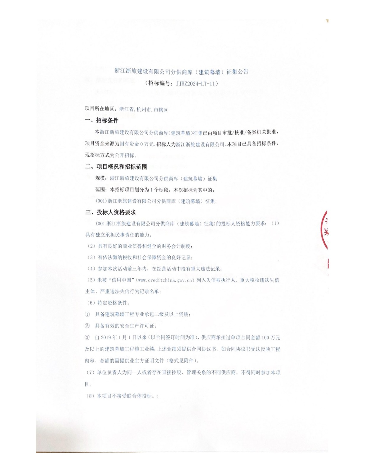 浙江浙旅建設(shè)有限公司分供商庫(kù)(建筑幕墻)征集公告