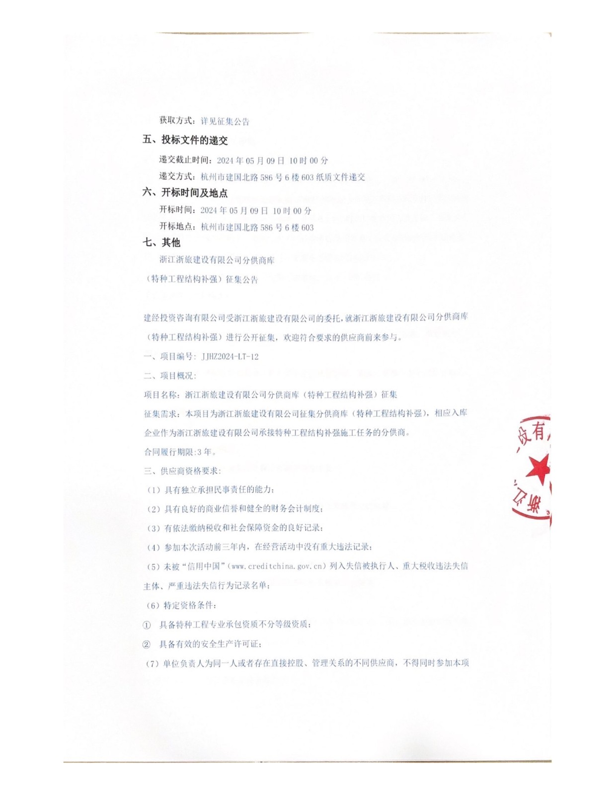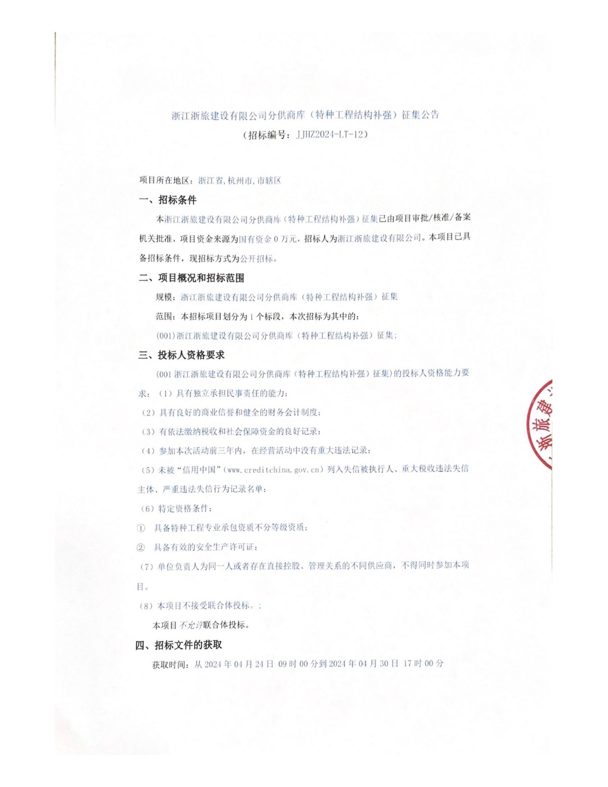 浙江浙旅建設(shè)有限公司分供商庫(特種工程結(jié)構(gòu)補強)征集公告
