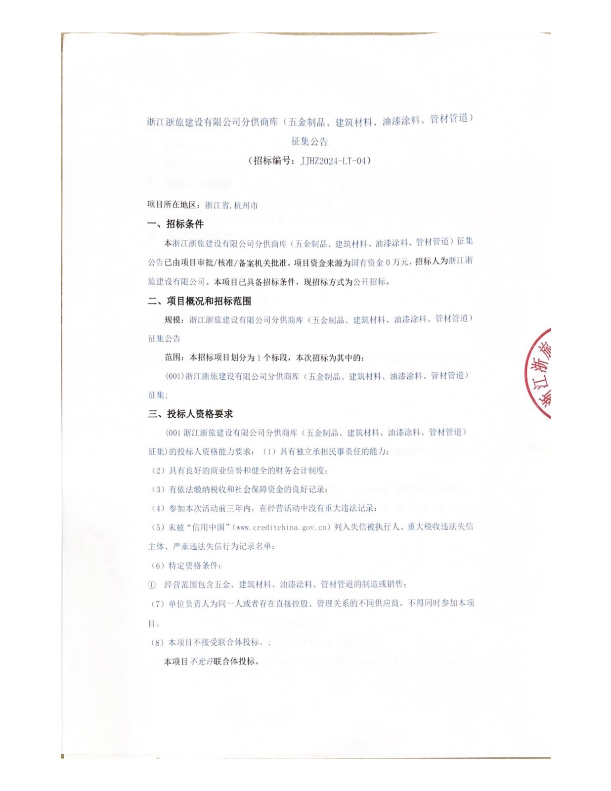 浙江浙旅建設(shè)有限公司分供商庫(kù)(電子與智能化)征集公告